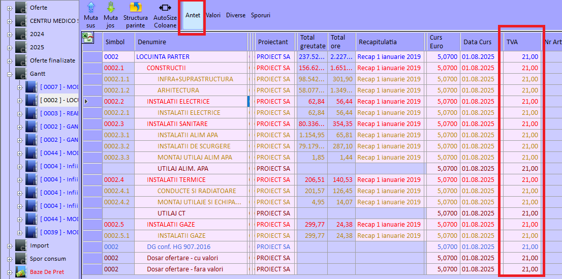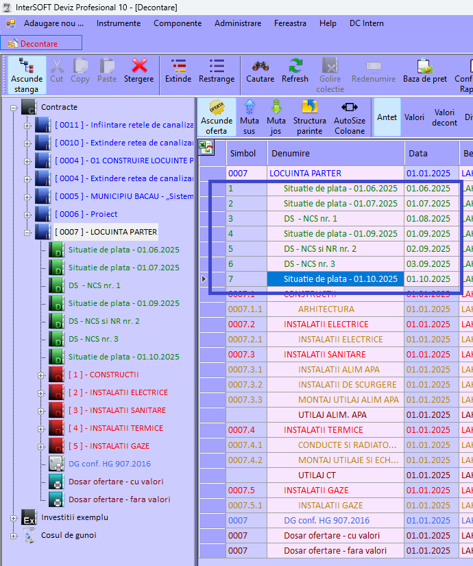 structura dinamica a proiectelor. Astfel intre nivelele proiect si deviz pot exista un numar nelimitat de nivele intermediare de tip Obiect si Capitol, respectiv proiectele pot fi grupate intr-o suprastructura numita Contract. Avantaje: - Proiectele de tipul reparatii/modernizare infrastructura strazi din cadrul oraselor si comunelor sa poata fi organizate/grupate dupa numele entitatilor teritoriale, numele strazilor, categoriilor de lucrari; respectiv proiectele de tipul complexelor rezidentiale pot fi organizate pe mai multe nivele, etc - Din punct de vedere al rapoartelor prezente - la nivel de Contract o sa gasiti centralizatoarele DG si F1 care cumuleaza valorile aferente centralizatoarelor DG si F1 din proiectele/investitiile din contractul respectiv. |