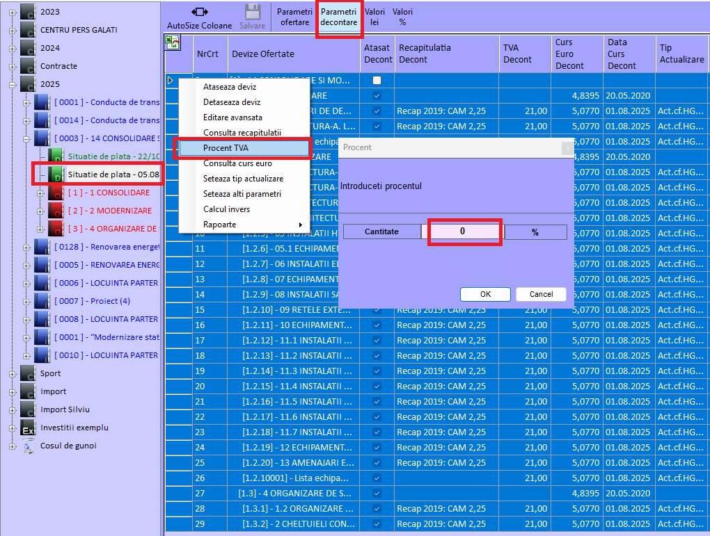 Editor Situatie de plata > | Functie noua "Decontare procentuala din restul de realizat" in editor situatie de plata. | |||||||||||||||||||||||||||||||||||||||||||||||