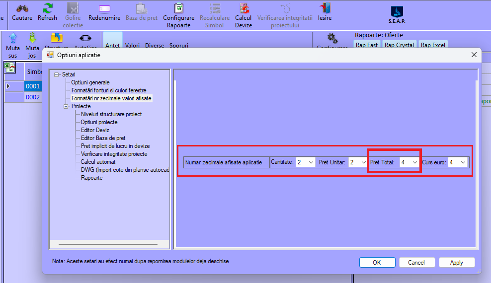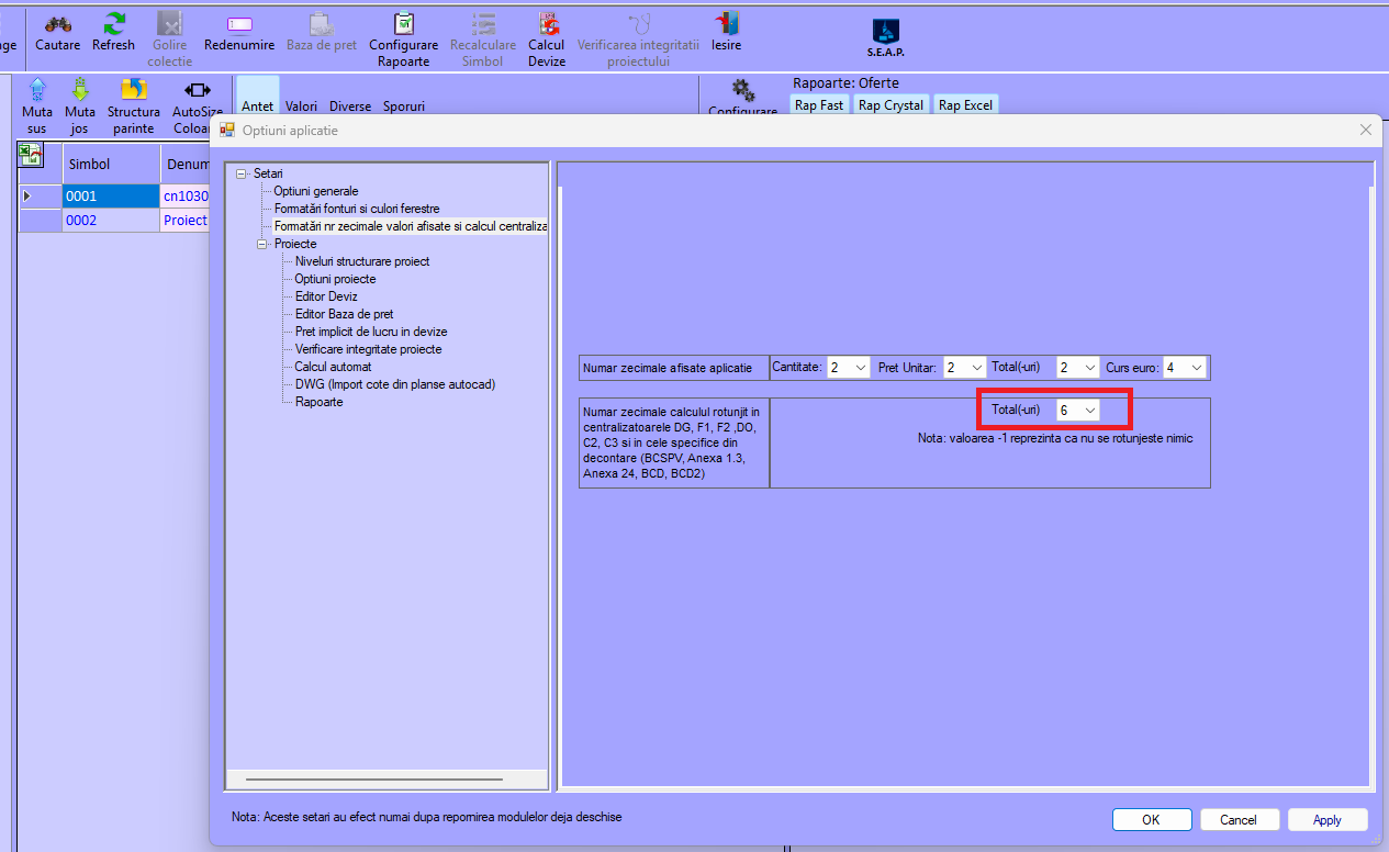 În versiunea 911 am introdus o nouă opțiune pentru Zecimale Total astfel încât opțiunea inițială e folosită pentru afișare și cea nouă e folosită pentru calcul rotunjit ca în imaginea de mai jos: